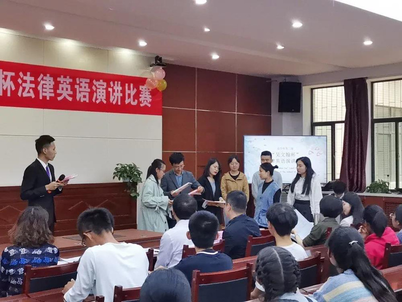 本次比赛以“用英语表达你的法律观点”为主题,学院党委副书记王金元、曹明、苏婉儿老师及外国语学院彭晓凌、马云霞、李辉、贺晨老师7名老师担任评审,共有19位研究生、本科生参加比赛。