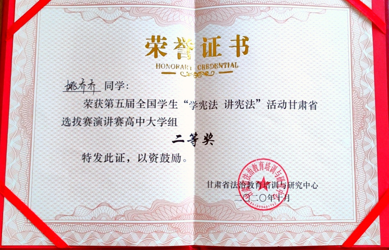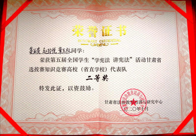 近日,由甘肃省教育厅主办,甘肃省法治教育培训与研究中心承办的第五届全国学生“学宪法 讲宪法”甘肃省选拔赛在甘肃政法大学进行。全省共有兰州大学、新葡萄8883官网AMG、西北民族大学等59所大中专院校推荐的59名选手参加了演讲比赛,来自全省44支大中专院校代表队参加知识竞赛。