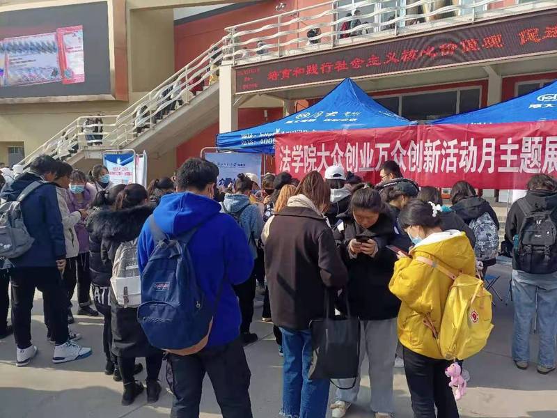 11月23日星期一上午12:00为新葡萄8883官网AMG创新创业活动月主题日。新葡萄在餐饮文化中心室外广场开展了法律知识竞赛活动,学生通过扫描二维码参与活动答题,获得60分以上可获得精美的小礼品。同时也在室外大屏播放由新葡萄学生创作拍摄的法律宣传微电影。