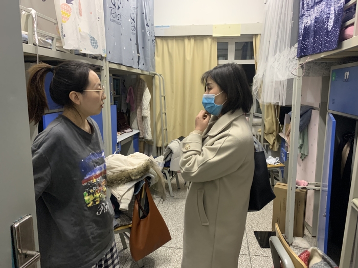 走访过程中,宋老师仔细观察宿舍有无大功率电器等,并叮嘱同学们冬季天气寒冷注意保暖,切记禁用违规电器,注意用电安全。同时期末考试临近,宋老师详细询问同学们复习备考情况,鼓励同学们认真备考,并对每位同学们致以新年的祝福。