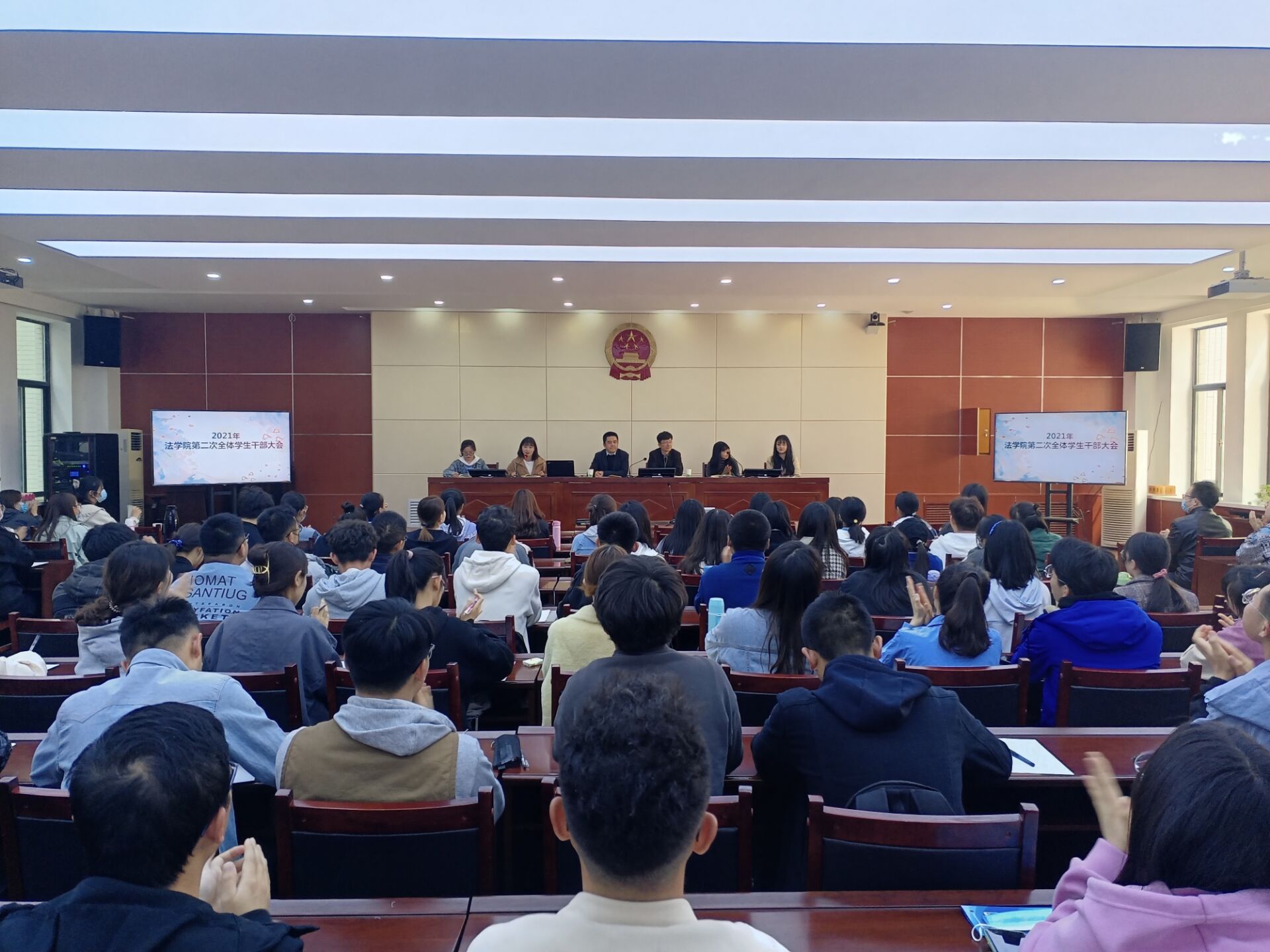 为进一步提升学院学生工作管理水平,增强学生干部工作能力和奉献意识,4月9日中午12时,新葡萄8883官网AMG在模拟法庭召开了全体学生干部大会。党委副书记王金元老师、团委书记张永祯老师及全体专兼职辅导员参加了会议。会议由宋香云老师主持。