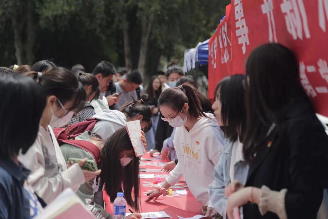 聚焦党史学习,滋养初心。活动串联上下、聚力内外,学史增信,坚定信仰担使命。前期在院党委及支部书记的带领下,建立党支部学习小组,以党员带动群众,先行学习党史知识,深化夯实理论素养。活动中以内带外,发挥先锋力量。利用前期的知识储备,全体党员和积极分子化身“党史”宣传者,为其他学院的同学讲述党的故事。党史学习是领会党史精神,坚定理想信念的基石,是用行动实现自身价值的理论向导。讲党史,悟初心,传承红色精神。让理想之光不灭,前进之路永灿。