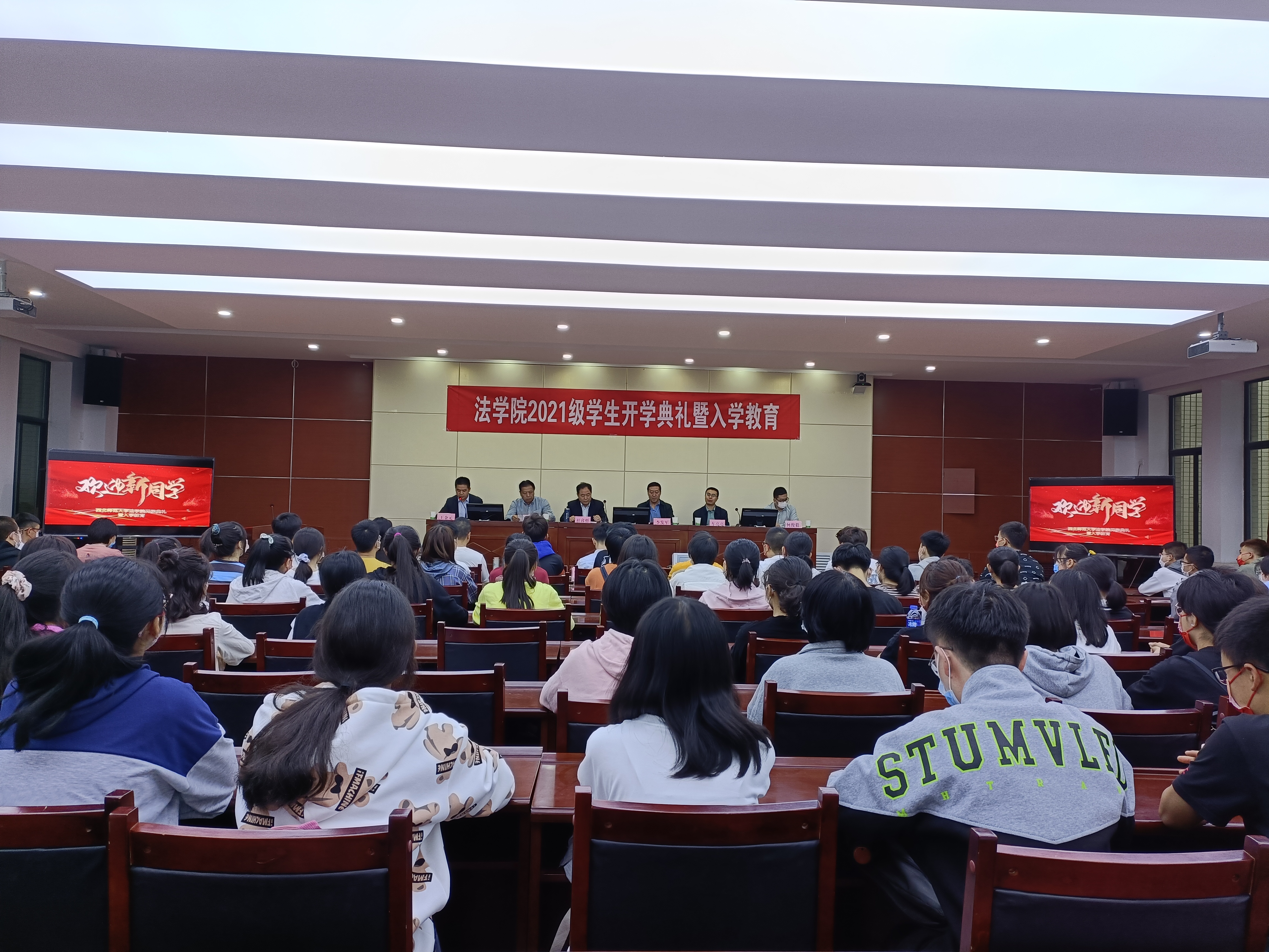 乘风远航启新程,春华秋实绘佳卷。9月15日上午9时,新葡萄8883官网AMG2021级新生开学典礼暨入学教育大会在模拟法庭举行。新葡萄8883官网AMG党委书记李发军、院长杜睿哲、党委副书记王金元、副院长党崇武、副院长车亮亮及系主任、班主任、辅导员和全体新生参加了会议。会议由党委副书记王金元主持。