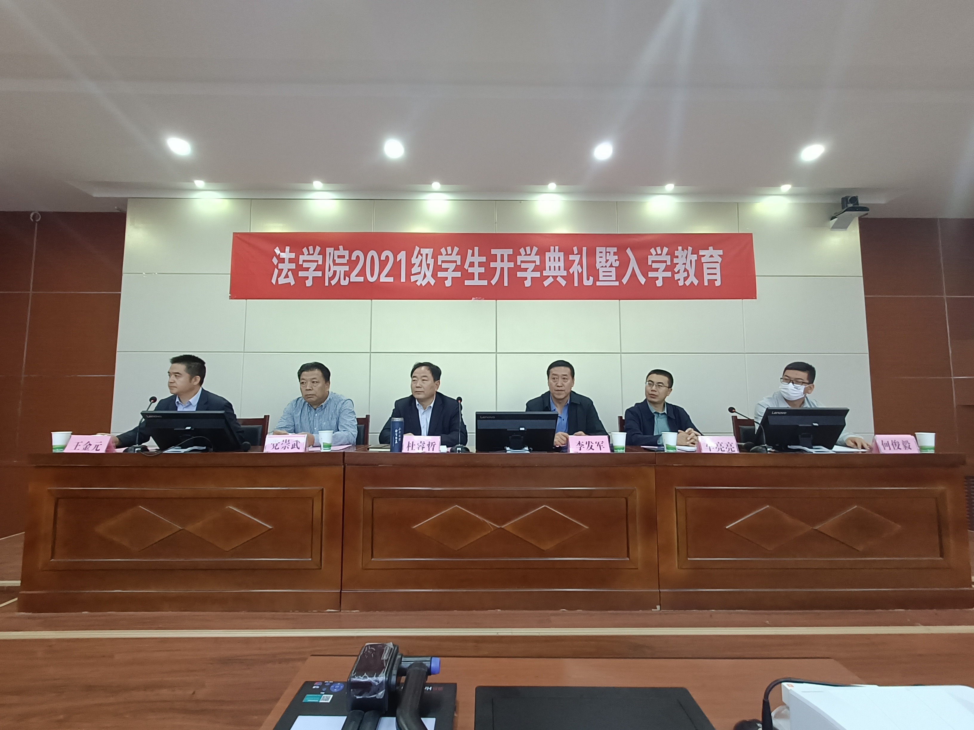 乘风远航启新程,春华秋实绘佳卷。9月15日上午9时,新葡萄8883官网AMG2021级新生开学典礼暨入学教育大会在模拟法庭举行。新葡萄8883官网AMG党委书记李发军、院长杜睿哲、党委副书记王金元、副院长党崇武、副院长车亮亮及系主任、班主任、辅导员和全体新生参加了会议。会议由党委副书记王金元主持。
