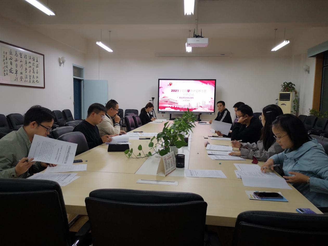 10月8日下午18:30分,新葡萄8883官网AMG2021—2022学年度班主任工作会议暨本科生奖助学金评定工作培训会在307会议室召开。学院学生工作负责人、全体本科生班主任及辅导员参加会议。会议由党委副书记王金元主持。