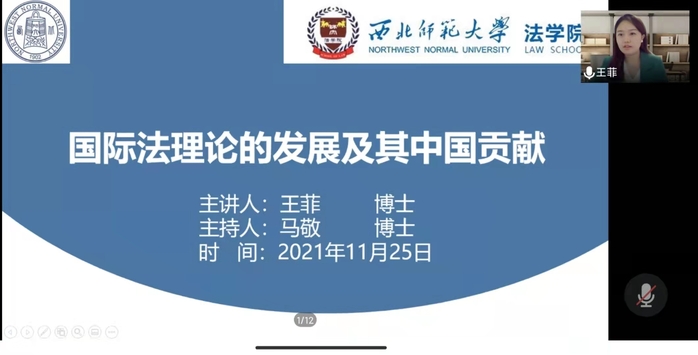 根据新葡萄8883官网AMG“研究生学术月”青年博士学术报告活动安排,2021年11月25日15时,新葡萄8883官网AMG青年博士王菲老师通过线上会议的方式为新葡萄师生作了一场题为《国际法理论的发展及其中国贡献》的学术报告。该报告由马敬老师主持,新葡萄全体研究生在线聆听了此次报告。