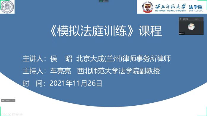 为提高法律专业人才培养质量,实现理论知识与法律实务相结合。2021年11月26号侯昭老师在新葡萄模拟法庭为2020级法律硕士研究生讲授了为期一学期的法律实务课程《模拟法庭训练》。