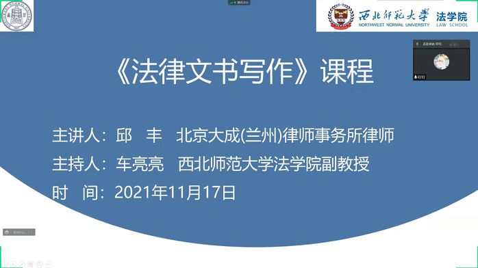为提升学生专业素养,拓展学生实务技能,强化法学专业的内涵建设,2021年11月17日新葡萄邀请邱丰老师为2020级法律硕士研究生开设《法律文书写作》实务课程。