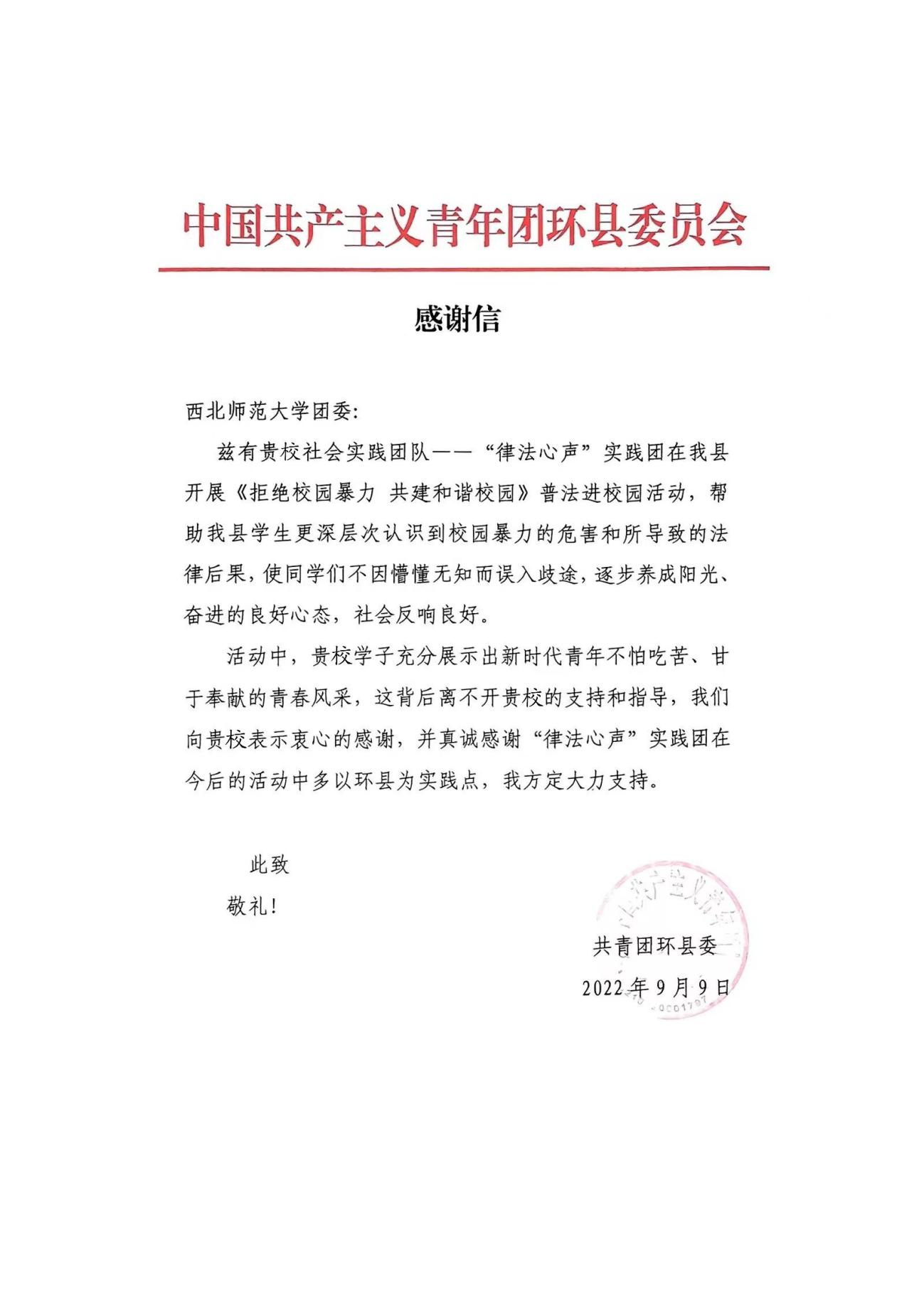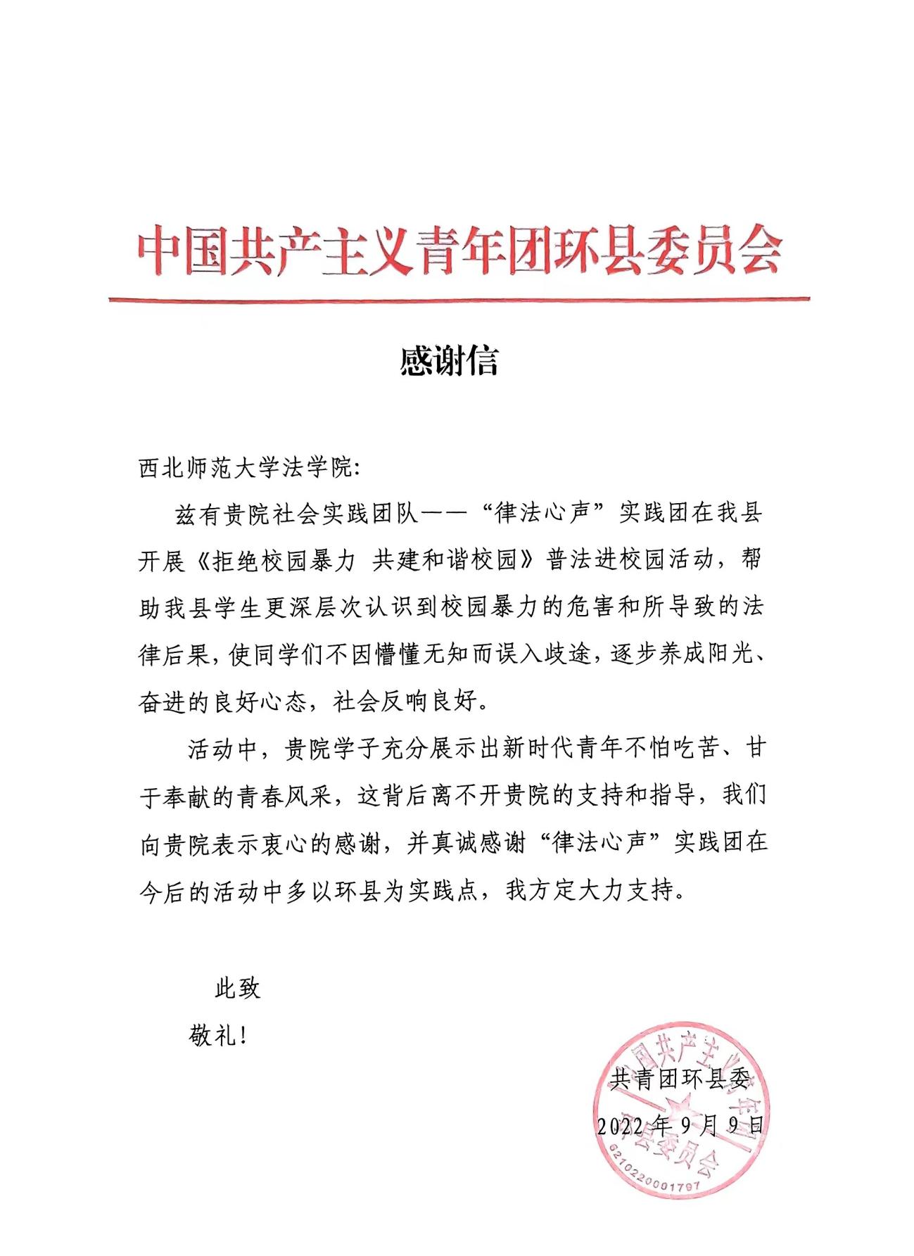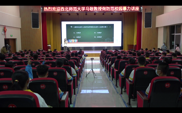 9月8日晚,新葡萄8883官网AMG“律法心声”实践团走进甘肃省庆阳市环县第五中学,为同学们带来了一堂别开生面的以“预防校园暴力”为主题的公开课.通过主题讲座,知识竞赛,远方来信和现场提问等多项活动,帮助青少年树立社会主义法治理念和提高法治素养,扣好人生第一粒“法治纽扣"。
