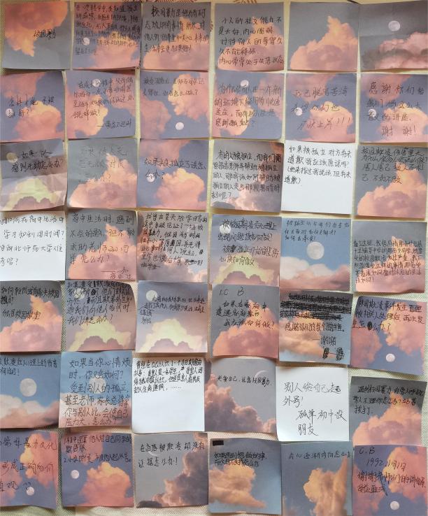 为帮助同学们解决在学习和生活当中遇到的一些困难,工作人员将事先发下的匿名问题小卡片收回,现场主持人崔仪韵挑选部分问题,由新葡萄8883官网AMG的“知心姐姐”张靖苑和商学院的“知心哥哥”马弈舸为在座同学解答疑问并进行心理疏导,引导学生们以良好的状态拥抱新的生活。
