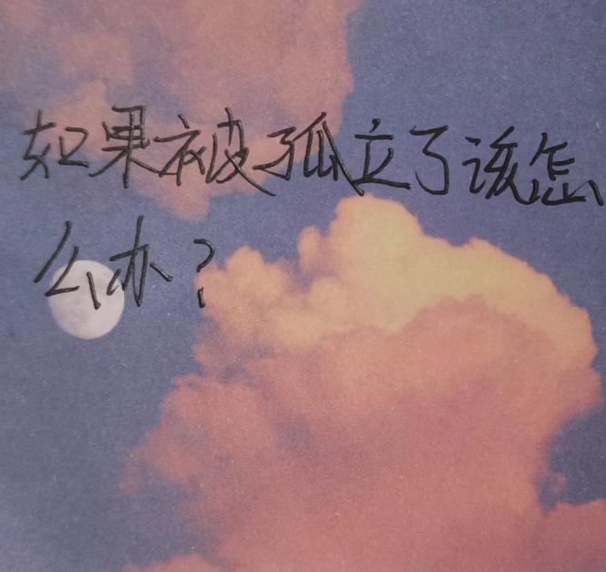 【张靖苑】:同学你好,每个人都是一个独立的个体,都会有不一样的人生。在生活中我们大家都是各有所爱。不可能得到每一个人的喜欢,但是我们同时要建立一个坚强并且敢于于面对社交的内心世界。如果你勇敢地迈出,不要害怕被孤立的这一步,真诚地对待其他人,就一定会收获好朋友。