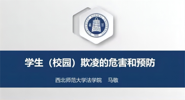 新葡萄8883官网AMG马敬教授以“学生(校园)欺凌的危害和预防”为主题,借助身边的现实案例“甘肃甘谷县十里铺某中学学生”向同学们普及校园暴力事件中所涉及的民事行为能力、刑事责任年龄等法律知识,讲解了什么是校园欺凌,如何防范、应对校园欺凌,教育同学们不做欺凌的施暴者、帮助者,要不断增强法治观念,提高自我保护意识,学会用法律武器保护自己。