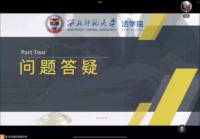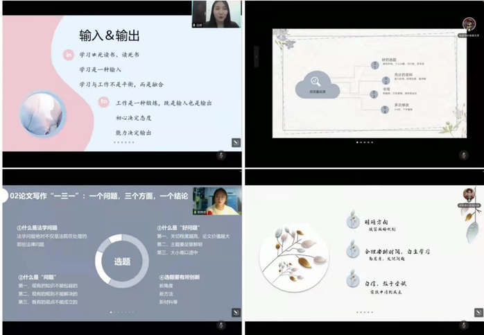提问环节中同学们分别就如何平衡法考和科研、如何进行论文选题、如何选择研究方向如何平衡学习生活向四位分享者进行了提问。分享人根据自己的学习心得和实践经验解答了同学们的问题。最后,主持人张天翼对本场会议进行了总结,本次分享会圆满结束。