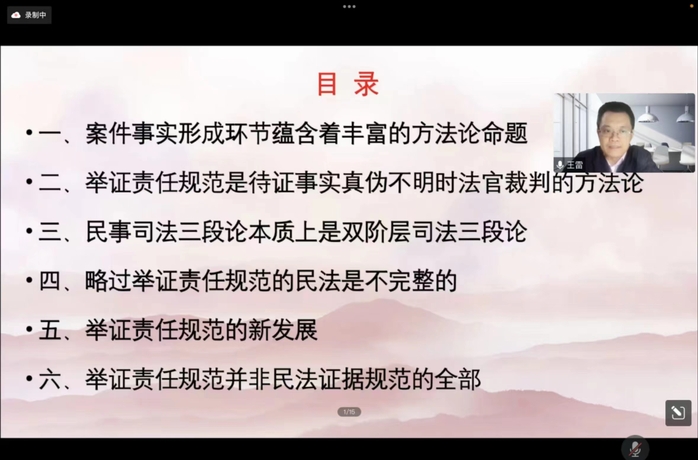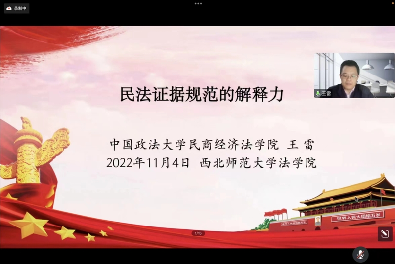 2022114日晚,新葡萄8883官网AMG邀请中国政法大学民商经济新葡萄8883官网AMG教授、博士生导师王雷为全院师生作题为《民法证据规范的解释力》的专题报告。本次学术报告由新葡萄8883官网AMG杜睿哲教授主持,龙鑫副院长、张继文老师和张钰涵老师参与讨论,新葡萄近三百名师生在线聆听。