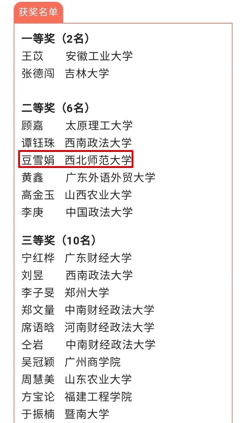“天欣杯”裁判文书写作大赛已举办六届,是具有全国影响力的比赛。大赛以提高学生参加法律文书写作的积极性、加强高校对法律文书写作培养为宗旨。比赛自2022年10月10日启动以来,近5000人参赛,收到北京大学、清华大学、中国人民大学等近400所境内外高校的有效作品1643份。初评阶段,我校是通过人数最多的学校,共有16名同学成功进入下一环节;投票阶段,全国投票总数达到125万余票,浏览量达376万余次。终评阶段,经最高人民法院、武汉大学、河南省高级人民法院、河南省天欣律师事务所、郑州大学等理论和实务界的16名专家评审,选出一等奖2名、二等奖6名、三等奖10名、优秀奖20名,其中新葡萄豆雪娟同学斩获二等奖。此次比赛由甘肃省高级人民法院龙鑫法官、北京大成(兰州)律师事务所陈海全律师团队为参赛选手提供针对性辅导,帮助参赛选手规范表述、解答疑惑。