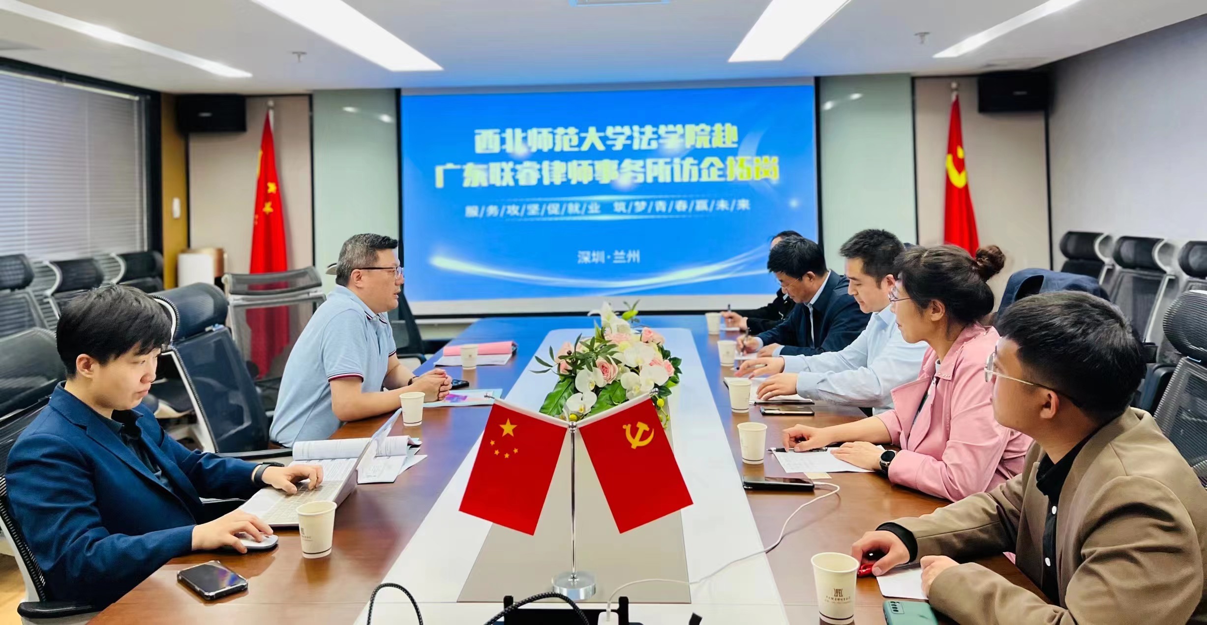近年来,在律所就业也逐渐成为毕业生的主要选择。在广东联睿律师事务所,学院与律所管委会陈俊主任、常钰律师和2021届优秀校友杨蓉淘巾之开展了热烈地座谈。王金元副书记首先对广东联睿律所吸纳毕业生表示感谢,他说:“西北师大在百廿办学历程中培养出了许许多多优秀的毕业生,学院重视与广东联睿律所的工作关系,今后将更加积极向律所推荐优质毕业生,使双方的事业发展的越来越好。”陈俊主任说:“杨蓉淘巾之律师毕业于西北师大新葡萄8883官网AMG,作为律所的优秀青年律师,两年来她的勤奋和努力是律所同仁有目共睹的。见微知著,对西北师大新葡萄8883官网AMG的毕业生质量律所是高度认可的。我们欢迎有更多的同学们来深发展,也愿意为同学们提供广阔的发展平台。”