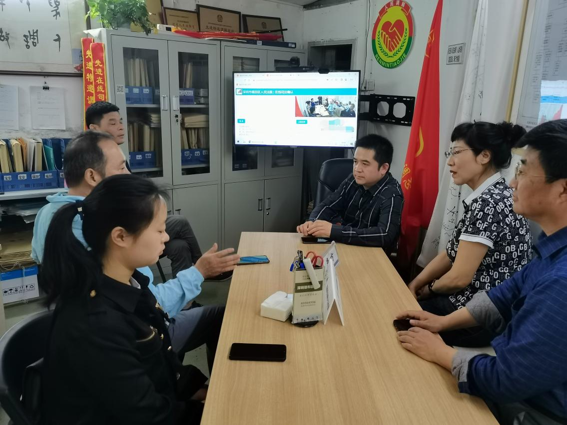 在调委会司法确认工作室,王金元副书记和调委会郑绍芳书记就基层人民调解员的岗位需求、聘用条件和薪资标准等展开了深入交流。郑绍芳书记说:“当前,我们的人民调解员队伍主体年龄偏大,在业务上还存在着不精不深的问题。随着国家多元化纠纷解决机制的全面展开以及纠纷源头治理工作的逐步加深,基层调解员的人数明显不够,我们亟需一批充满干劲、朝气蓬勃的具有法学专业知识背景的年轻人加入到人民调解员队伍中,更好地为老百姓服务。因此,我们热烈欢迎西北师大新葡萄8883官网AMG的毕业生能够在深圳的基层开展工作,为多元化纠纷化解做出贡献。
