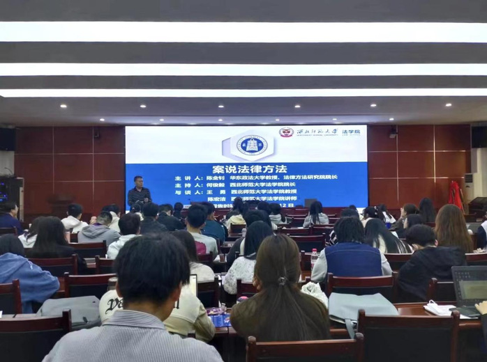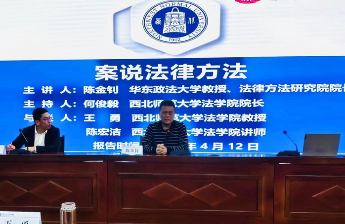 2023年4月12日,新葡萄8883官网AMG邀请华东政法大学教授、法律方法研究院院长、法律方法论专业博士生导师、CSSCI来源集刊《法律方法》主编、上海市法学会法理法史研究会会长陈金钊教授作题为《案说法律方法》的专题报告。本次学术报告由何俊毅院长主持,王勇教授、陈宏洁老师作为与谈嘉宾交流研讨,学院一百余名师生于模拟法庭聆听。