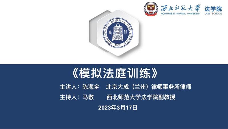 为提升同学们的法律专业素养,提高法律专业人才培养质量,促进理论知识和法律实务相结合。2023年3月17日新葡萄邀请陈海全老师为新葡萄学生作《模拟法庭训练》专题报告。