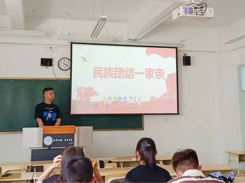 在主题班会开展过程中,各班邀请本班少数民族同学与汉族同学进行与民族文化有关的朗诵活动。其间,同学们或声情并茂向大家讲述有趣的民族风俗,或以视频并兼讲述带领大家领略民族风光,或以家乡语言与大家讲述民族故事。