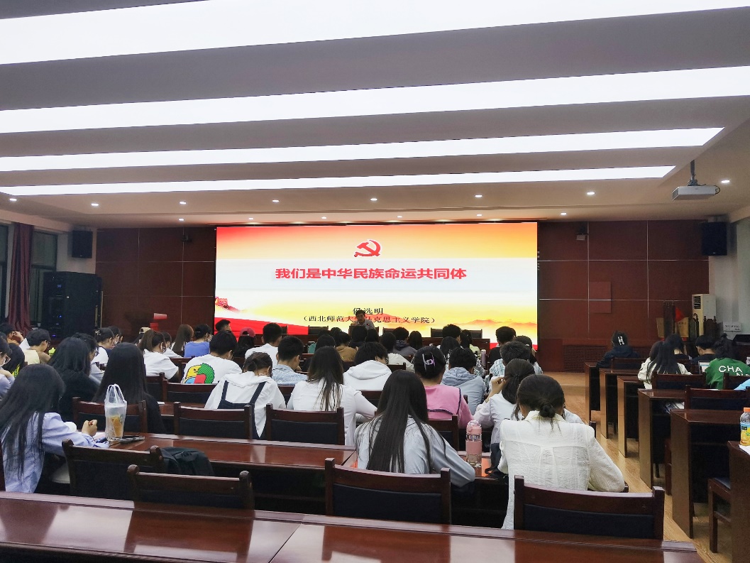 5月22日,新葡萄8883官网AMG邀请马克思主义学院侯选明教授为新葡萄学生开展主题讲座。侯老师以中国为始,让同学们明了,无论属于五十六个民族中的哪一个民族,大家都是中国人。而后,他开始用生动的举例、幽默风趣的语言和亲切近人的交谈方式,为同学们从命运共同体讲起,说明民族的由来。又纵横中外,向同学们详细讲述了我国与国外比较成功的民族政策,也向大家讲述了世界上仍有许多国家和地区存在相当多的民族问题。最后,侯老师告诉同学们,世界上没有任何一个民族是优于其他民族的,我们都是传承属于自己祖先独特的文化,但是我们都是中国人,都应该为中华民族的伟大复兴做出贡献。