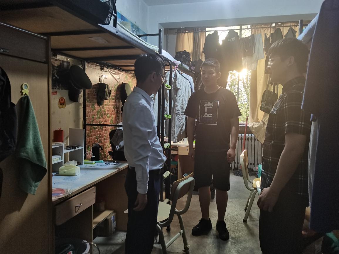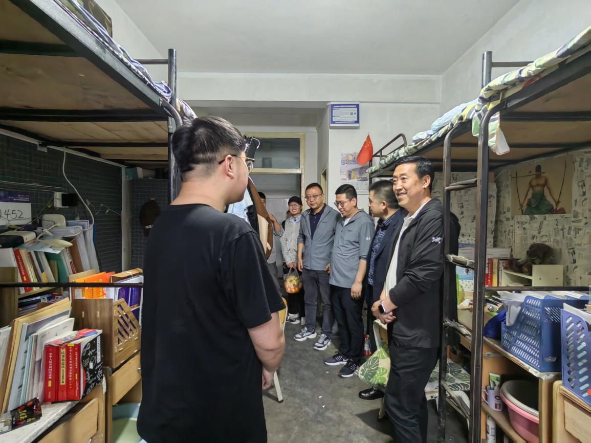 为进一步落实学校主动创稳推进大会精神,积极促进平安校园建设,引导2023届毕业生温暖、有序、安全、文明离校,5月29日晚,新葡萄8883官网AMG党委书记李发军、院长何俊毅、党委副书记王金元、法律系主任张继文、毕业班班主任马敬、张永祯及团委书记白洁、辅导员王婷婷、秦宇帆等前往兰天学生公寓,走访慰问即将启程离校的2023届毕业生。