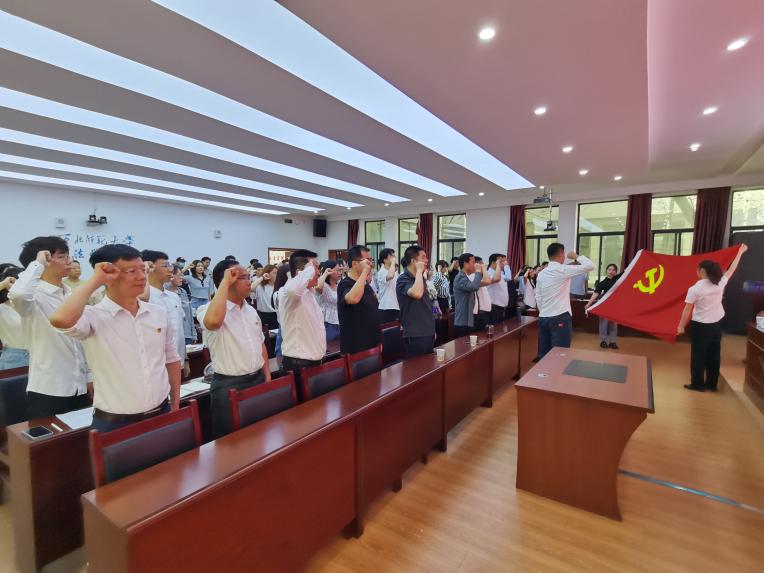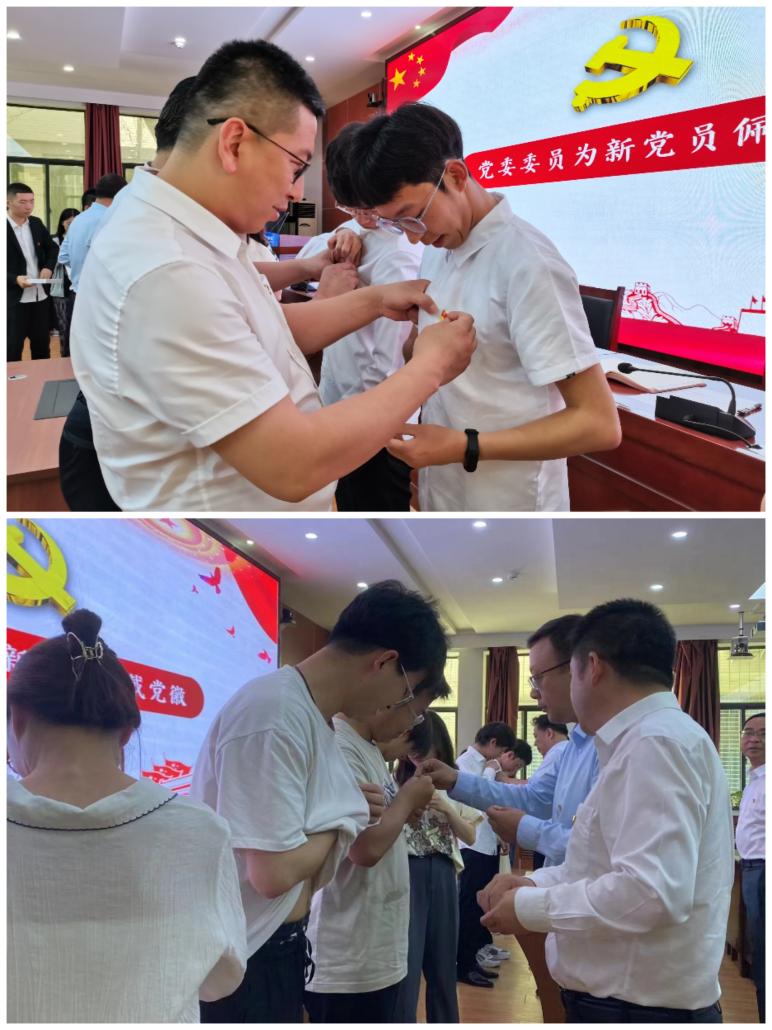 随后,全体党委委员为25名新发展党员佩戴党徽,全体与会党员面向党旗进行了庄严宣誓,重温入党誓词,将不忘初心、牢记使命深深融入自己的精神血脉之中。宣誓后,优秀党员刘易、优秀党务工作者赵宇轩、新发展党员代表吴新迪分别上台发言,表示将时刻铭记入党誓词,以实际行动展现党员风采。