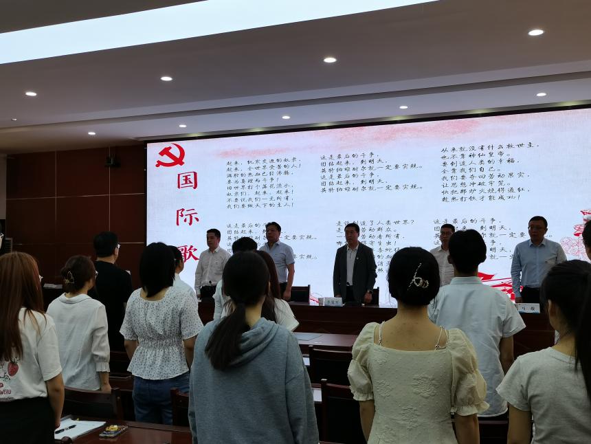 6月30日上午,新葡萄8883官网AMG党委庆祝建党102周年座谈会暨新发展党员入党宣誓仪式在模拟法庭举行。党委书记李发军、院长何俊毅、副院长党崇武、法律系主任马敬、党委委员田庆锋、张永祯及各支部支部书记、全体师生党员约130人参加了会议。会议由党委副书记王金元同志主持。