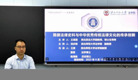 “研究生学术月”与“简牍法学”论坛系列活动:西北政法大学副教授王斌通作专题学术讲座