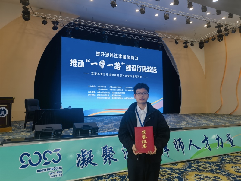 10月31日,由北京市司法局、内蒙古自治区司法厅、江苏省司法厅、河南省司法厅及四省区市律师协会共同主办,内蒙古自治区司法厅和律师协会承办的京蒙苏豫涉外法律服务研讨会暨专题培训班在满洲里市召开。新葡萄8883官网AMG2021级本科生周凌屹、朱禾受邀参加研讨会。