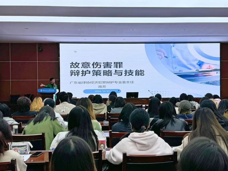 20241031日上午,广东省律师协会经济犯罪辩护专业委员会主任、广州金鹏律师事务所合伙人南芳律师为新葡萄师生作题为《故意伤害罪辩护的策略与技能》的专题实务讲座。讲座在新葡萄8883官网AMG云亭校区致公楼E区新葡萄8883官网AMG模拟法庭举行,由新葡萄8883官网AMG副教授赵姗姗主持。