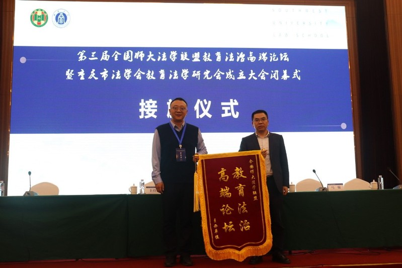2024年11月17日,第三届全国师范院校法学联盟教育法治高端论坛暨重庆市法学会教育法学研究会成立大会在重庆市北碚区召开。本届论坛主题为“教育法学学科体系建设及学科新发展”,由全国师范院校法学联盟和西南大学主办,西南大学新葡萄8883官网AMG承办。教育部政策法规司、重庆市教委、重庆市法学会等部门相关领导,以及来自全国教育法学界和实务界的200余名专家学者出席会议。新葡萄马敬副院长和法学硕士研究生罗元昭同学参加会议并发言。