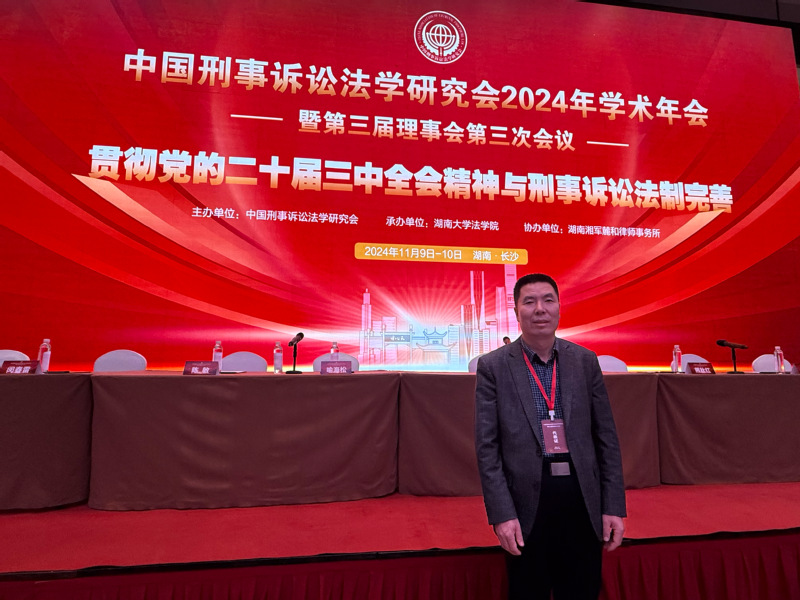 2024119日至10日,中国刑事诉讼法学研究会2024年学术年会暨第三届理事会第三次会议在湖南省长沙市隆重举行。本次会议由中国刑事诉讼法学研究会主办,湖南大学新葡萄8883官网AMG承办,湖南湘军麓和律师事务所协办。本次学术年会的主题为“贯彻党的二十届三中全会精神与刑事诉讼法制完善”,共设“刑事诉讼法总则及一般性问题”“刑事立案、侦查程序和制度问题”“公诉程序和制度问题”“刑事审判程序和制度问题”“刑事执行程序和制度、特别程序和制度及其他问题”等5个分议题。来自全国100多所高校、研究机构、期刊编辑部等近500人参加会议。新葡萄柴晓宇教授以理事身份受邀参加此次会议,并参与了第五分议题“刑事执行程序和制度、特别程序和制度及其他问题”的研讨活动。