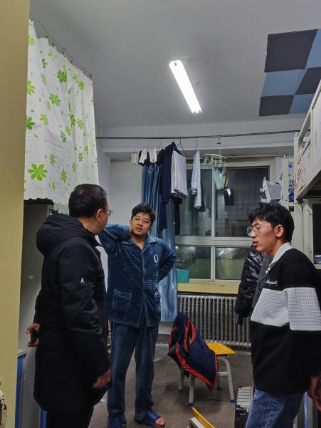 走访过程中,老师们详细询问同学们的生活情况、查看了学生宿舍用电情况,表达了学院对同学们的亲切关怀,鼓励大家尽快调整作息,适应新学期的学习节奏,以饱满的热情投入到学习中。