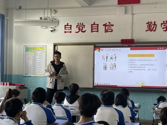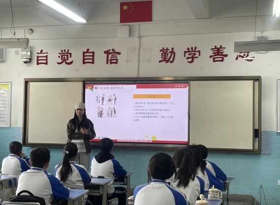 之后,宣讲团成员分赴该校九年级各班开展“抵制校园霸凌 法律守护青春”普法宣讲。宣讲团成员将抽象的法律概念转化为生动案例,系统讲解校园霸凌的表现形式、法律后果及应对措施。在趣味问答环节,宣讲团成员通过启发式教学引导中学生深入思考,现场气氛热烈,有效提升了中学生的法治意识和自我保护能力。