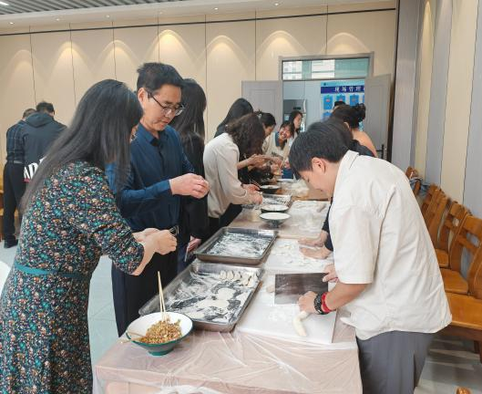 临近中午,在互动环节,一场别开生面的“同心包饺子”活动在新校区食堂温馨展开。家长、学生和老师们围坐一桌,揉面、擀皮、包馅,配合默契。形态各异的饺子不仅展现了大家的巧手匠心,更包裹着家校间浓浓的情谊。午餐时分,欢声笑语中,家校关系进一步升温,活动氛围达到高潮。