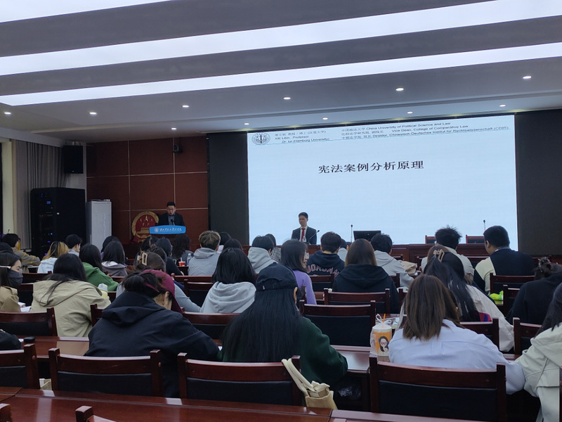 4月25日,中国政法大学比较法学研究院副院长、中德新葡萄8883官网AMG院长谢立斌教授应邀为新葡萄师生带来了一场题为《宪法案例分析原理与方法》的学术讲座。讲座在新葡萄8883官网AMG模拟法庭举行,吸引了多名师生到场聆听,气氛热烈。
