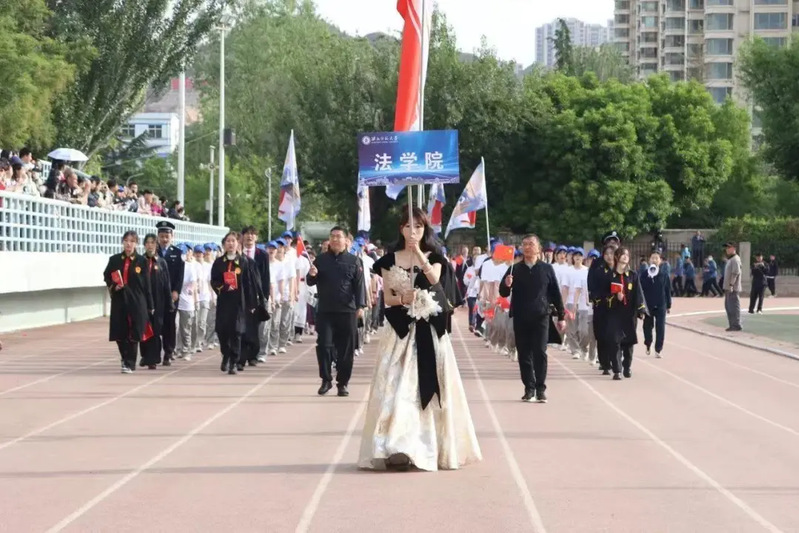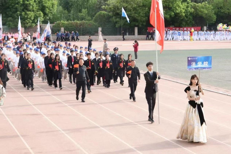 5 月 14 日上午,运动会开幕式隆重举行。新葡萄8883官网AMG方阵昂首阔步走进会场,整齐的 步伐、响亮的口号,彰显着法科师生的朝气与活力。“法耀青春,逐梦赛场”的口号声 震云霄,他们用饱满的热情诠释着对法律事业的热爱和对体育精神的追求。方阵中,师生们有的身着运动装,有的身着法官服,有的手持法律典籍,他们精神抖擞,展现出法 学院团结一心、奋勇争先的精神风貌。