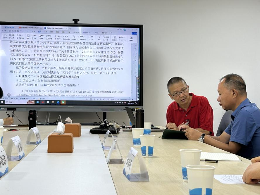 在与谈过程中,陈永胜教授指出法律史参与简牍学研究是突破其困境的重要机遇,法律史的保守无法满足现代社会的需要,传世法律文献对先秦秦汉法律史的记载和现代学者的书写过于简略,对西北汉简法律文献整理不够系统,史学功底在法律史研究中占有重要地位;王勇教授指出,基于法律史基础学科和交叉学科的双重属性,其参与简牍学研究具有重要的基础,简牍时代是中华法治文明最为辉煌的写本时代,李力教授通过系统的学术史研究证成了简牍法学;杨同军教授认为李力教授的研究为我们竖起了简牍法学研究的大旗。其他老师和同学从不同的角度与李力教授针对具体的问题展开了学术交流。